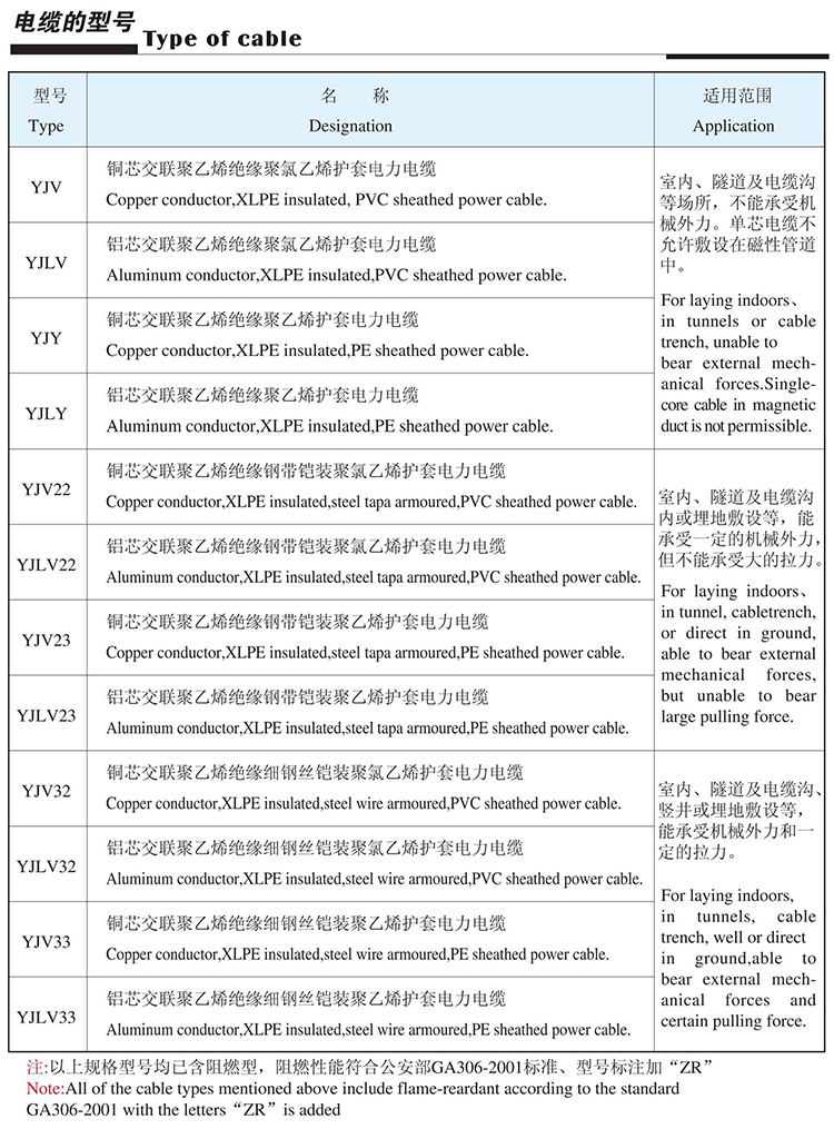 0.6-1kV交联聚乙烯绝缘(阻燃)电力电缆